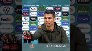 În timpul conferinței de presă dinaintea meciului Ungaria-Portugalia, Cristiano Ronaldo a scos rapid cele două sticle Coca-Cola (sponsorizează Euro 2020) de la masă și a spus „Bea apă”.