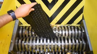 Un distrugător industrial zdrobește diverse obiecte, oferindu-ne un sentiment de plăcere.