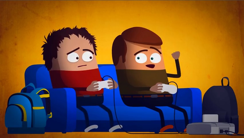 Сидя на диване, двух друзей, играющих в видеоигры бой в консоли. Но один из двух является лучшим игроком и получить.