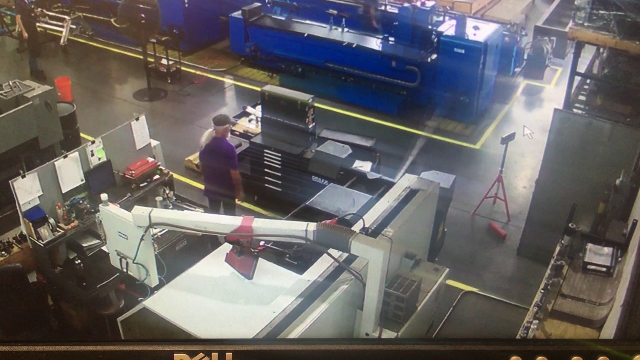 Токарный станок с ЧПУ вращает длинный металлический стержень, которые простираются слишком далеко от машины. В баре будет сгибать и начинает дубасить все на своем пути, как кнут. К счастью никто не пострадал.