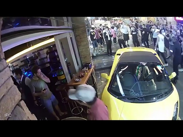 В Гонконге, автомобиль, кажется, приближается бар и останавливается прямо у входа. Но в машине нет водителя. Автомобиль был припаркован только вниз и катился по дороге он не натянул ручник его владелец.