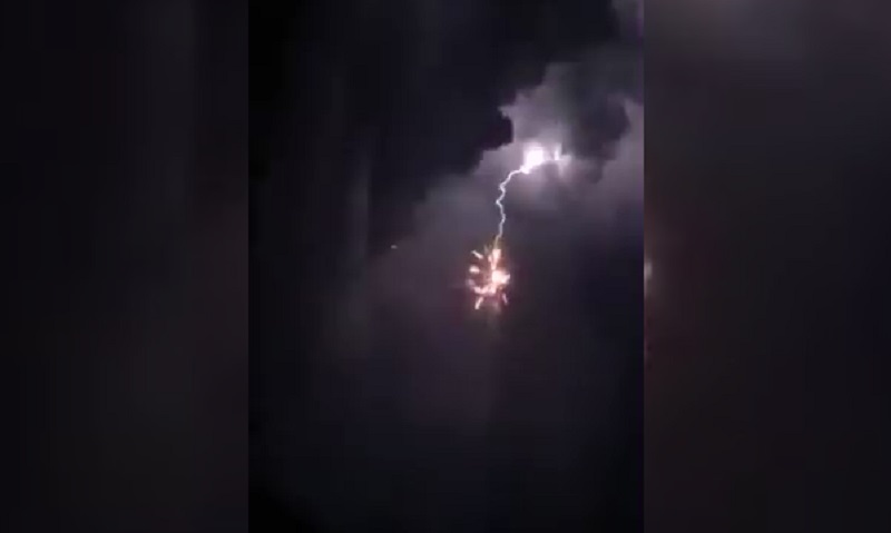 Во время празднования 4 июля в штате Теннесси, кто-то записал фейерверк в небе, когда один из них был поражен молнией.