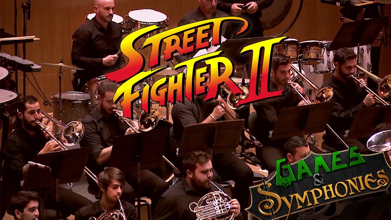 Симфонический оркестр Игр и симфоний из Испании, интерпретирует музыку известной видеоигры Street Fighter 2 в Барселоне.