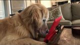 Собака выясняет способ сделать холодильник лед Диспенсер работа