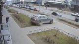 На спуске дороги в Вустере, Англия, водитель танкера, не задев некоторые стены, две припаркованные машины и светофоры (3 августа 2018). К счастью, это эффектная авария не вызывает никаких травм.