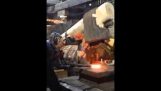 Моти-маленький пирог из риса и трав (ёмоги). Сначала отваривают рис, и после поражения с большие деревянные молотки (Кине) в традиционной чаши (УрГУ) Вместе с травами, пока они не превратились в пасту. Видео показывает окончание замеса, где один должен очень быстро дождь и поворачивая тесто, а другой в такт с молотка.