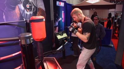 Боксер Тони Джеффрис имел возможность проверить состояние художественного учебного заведения, отчет IHRSA тренажеры в Сан-Диего, Калифорния. Это мешок бокса с датчиков, называемых BotBoxer, и пытаются избежать ударов боксера.