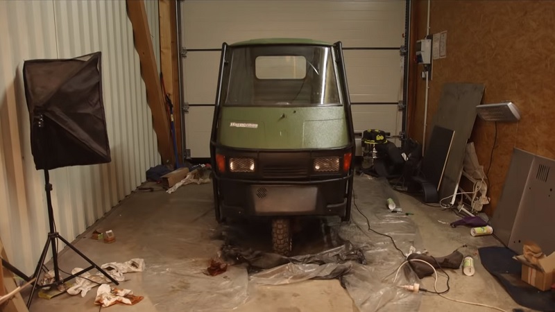 Матис из Германии купил старый трехколесный Piaggio Ape и сделал несколько исправлений и улучшений, чтобы двигаться легко по неровной дороге. С 9.000 фотографии, Матис создал забавный фильм движения остановки, чтобы показать нам, как делал это преобразование.