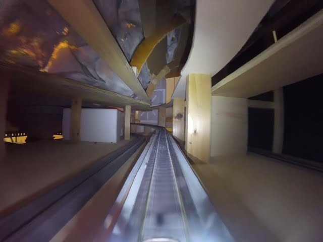 Камера GoPro записывает маршрут небольшого поезда, на выставке миниатюр в Барселоне.