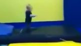 Маленькая девочка, делая некоторые невероятные сальто и вращения в воздухе.