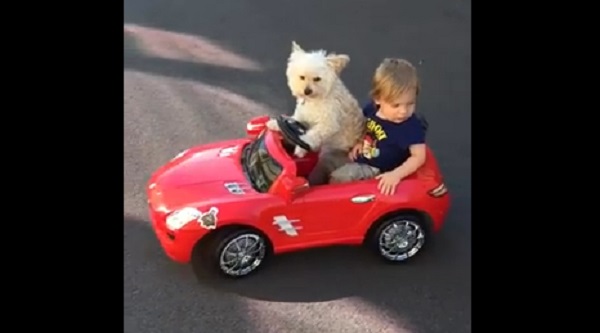 Маргаритка, собака Мальтийский/Чиуауа, расположен за рулем автомобиля ilektrokinitoy детей с ее ноги на колесе. Хотя первый документ, который ведет свой собственный автомобиль впечатляет, в самом деле, это не дело. Дейзи поворачивает колесо окончательно покинули, Хотя idioktitria контролировать направление маленький автомобиль с дистанционным управлением, исправляя право.