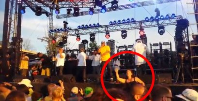 Во время концерта рэп на фестивале Bonnaroo в Манчестере, штат Теннесси, женщина сидит перед сценой и перевод песен на языке жестов, для слабослышащих.