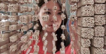 Художник Hong Yi из Малайзии сделал огромный портрет актера Джеки Чана 64 с использованием.000 бамбуковыми палочками.