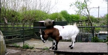 Коза, которая делает страшные заголовки с футбольным мячом.