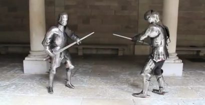 Видео из музея Клюни во Франции, представляющий боевых условиях с броней, которая использовалась в XV веке.