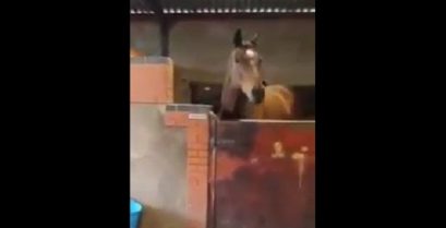 A horse развлечений с музыкой и кажется, что поколебать его голову с ритмом.
