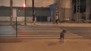 Собака в Бразилии являются очень законопослушных. Расположенный напротив пешеходного перехода, Ожидание, чтобы включить зеленый до пересечения дороги.