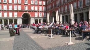 Во вторник, 15 марта 2016 г., на Пласа-Майор в Мадриде, перед игрой Атлетико Мадрид - ПСВ Эйндховен., Голландский фанаты имеют сожаления акт. Сидя в кафе, [...]