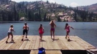 На плавающей платформе, Маленькая девочка хочет посмеяться над друзьями. Вместе с четырьмя другими ребята решили получить импульс и падения вместе в воде, но он остановится [...]