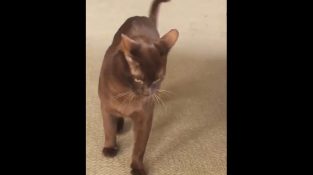 Владелец кошки показывает нам ежедневную битву с его домашним животным, когда он пытается съесть пищу кушетки.