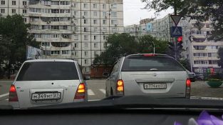 Страна, где нет обычных водителей и дорожных условий. Здесь два автомобиля намерен двигаться в противоположных направлениях, в передней части пересечения.