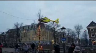 Вертолет приземляется на Принсенграхт мосте после сигнала тревоги кто-то почувствовали через лед на замерзшем канале. К счастью, пострадавший был уже спасен.