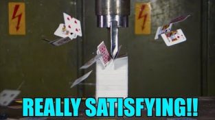 Расщепление 10 колод игральных карт с помощью гидравлического пресса