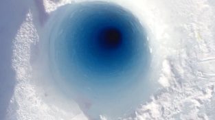 На айсберг в Антарктиде, Ученые сделали большое отверстие 90 метров, для того, чтобы извлечь ядро льда. Один из них берет кусок льда в отверстие, и записывает странный звук [...]