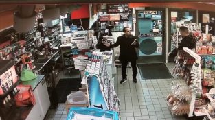 В заправочной станции города в Buena Park Калифорнии, от дежурного полицейского, указывая свой пистолет на человека, потому что он думал, что он украл коробку Mentos конфеты. Но человек обычно платят.