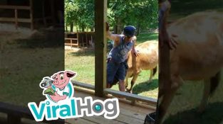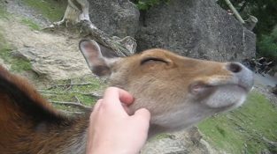 Олень, похоже, не бояться при приближении человека, и вознаграждено с некоторым петтингом.