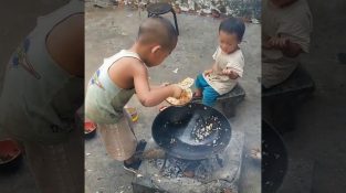 Маленький мальчик готовит кантонский рис