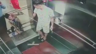Двое рабочих пытаются разместить стеклянную панель внутри лифта. Но дверь закрывается и лифт начинает двигаться...