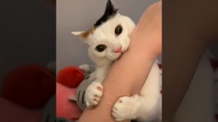 Кошка в экзистенциальном кризисе задается вопросом, почему она кусает руку своего хозяина.