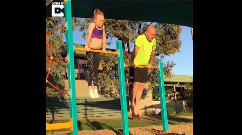 Poďme Mils, 41chronos otec, kroniky jeho úsilia naučiť zložité pohyby 9chronis fitness dcéry.