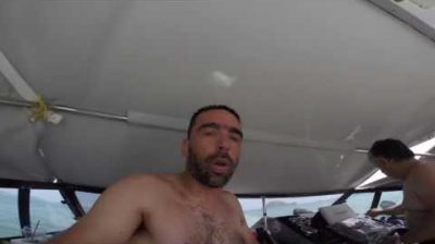 Nezákonné harpúna zbraň rybár Zakynthos zasahuje do vášnivej hádky s pobrežnej stráže (Potom, čo dumpingové väčšinu svojho rybárskeho náčinia do mora pri rybolove do zakázaného ekologickej zóny)