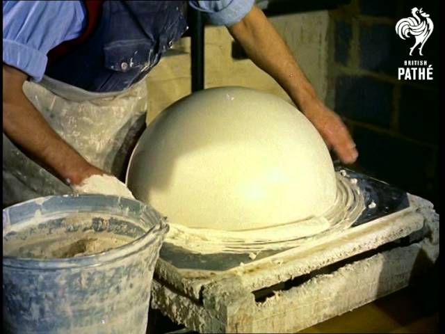 Proces výroby geografických glóbusov v roku 1955, v továrni v Londýne.