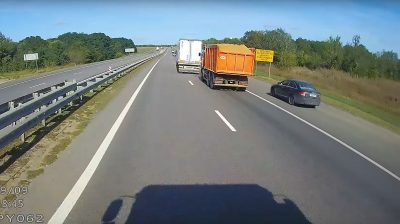 Minulú sobotu v regióne Ruska Voronezh, motorista sa snažil predbehnúť dva vozne z pravej, Pomocou núdzového pruhu.