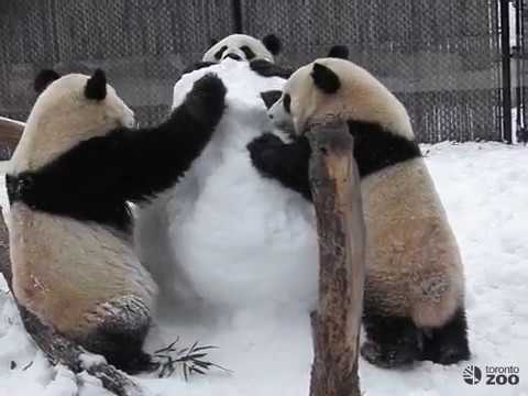 Pozrite sa, ako je Shun, Jia Panpan a Jia Yueyue hrať s snehuliaka Keepers postavený im tento týždeň.