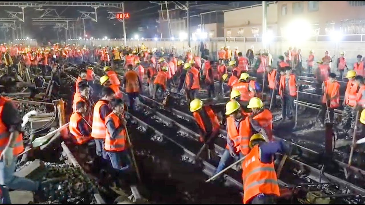 V piatok 23. februára v Longyan mesta v Číne, 1500 pracovníkov a 23 rýpadlá sú schopné vytvoriť železničnej stanice v iba 9 hodín.