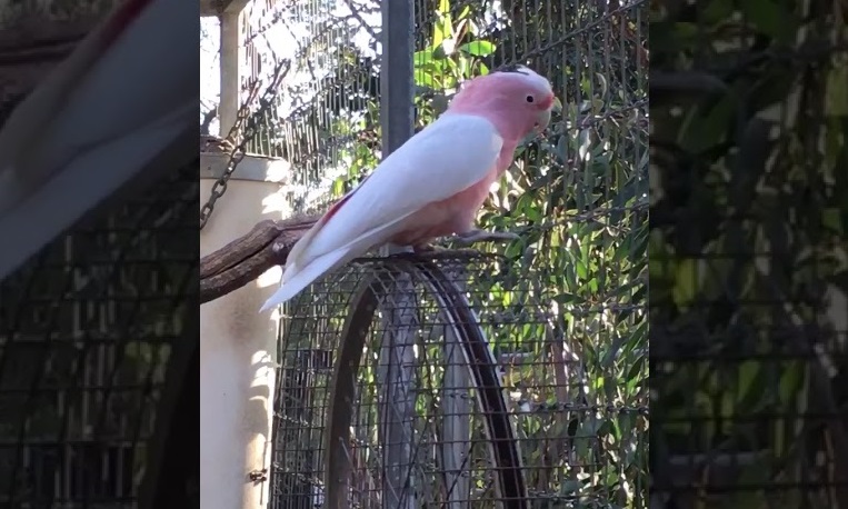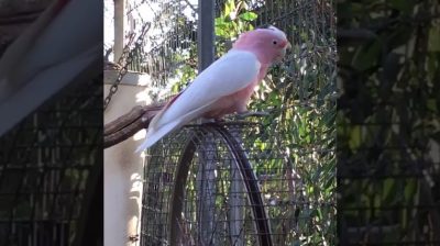 Tento ružový papagáj (Kakadu Inka) v Austrálii Perthe pobavila otáčania kolesa bicykla. Lepšie ako dráha!