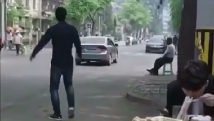 Muž hádže plastovú fľašu späť oknom automobilu. jasne falošný, ale vtipné.