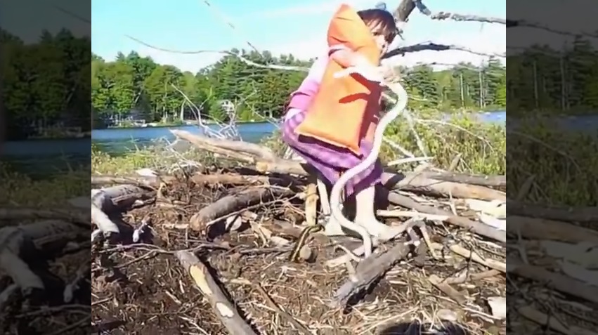 Beaver Island v Michigane, dievčatko videla na zemi veľký had. Malý jednoducho uchopí do dlaní, zdvihne ho a zakričí 'Pozri, našiel som ju.'!'.