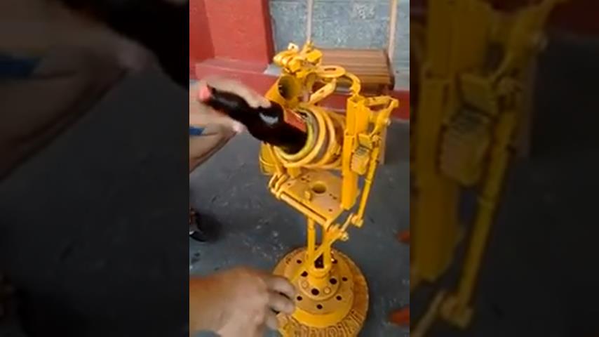 Mechanický otvárač, ktorý sa otvára pív pohybom páky.