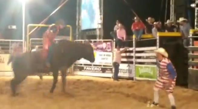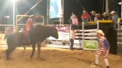 V aréne pre rodeo v Brazílii, býk odštartuje kovboja sa snaží pomôcť svojmu kolegovi. Ten človek bude preč a ochranný plot a pristál v diváckej oblasti.