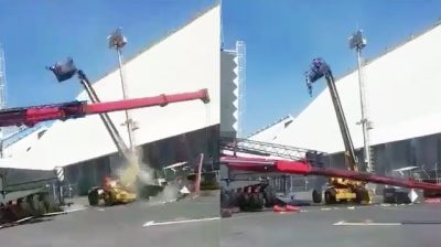 Človek je vľavo visí po žeriav spadne v prístave v Guatemale, a tento žeriav nehode bol chytený na kamere.