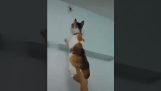 Pštros blížiace sa muža, ktorý riadi svoje auto s otvorenou kapotou, a snažia sa chytiť jeho nástroje. Možno, že sa jedná o prvý pštros inžinier.