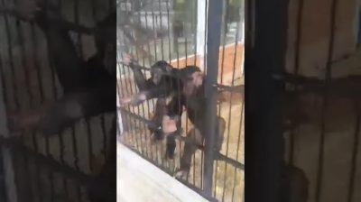 V zoo v jaltskom meste Krym, šimpanz ukradne mobil ženám z rúk.