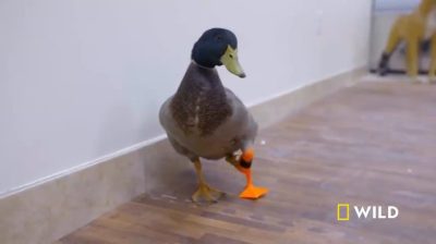 Kačica menom Waddles má zdravotné postihnutie na ľavej nohe. Majiteľ oslovil spoločnosť Bionic Pets, vyrobiť protetickú nohu s 3D tlačou.