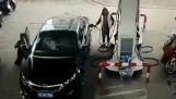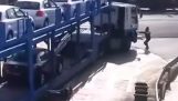 Keď spí bezstarostný na svojom skútri, Muž bude prekvapený hlukom vedľa neho.