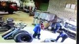Oprava golfu Volkswagen v „workshope“ v Afrike. S pomocou piatich mužov, Auto stúpa, aby ho inžinier mohol bezpečne opraviť. Zatiaľ čo infraštruktúra môže byť v niektorých oblastiach Afriky výzvou, Miestni inžinieri často vykazujú pozoruhodnú schopnosť udržať vozidlá v prevádzke aj v ťažkých podmienkach.